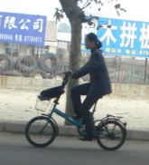 | Here are 74 pictures of bicycles. These have been culled from an estimated 500 attempts to take interesting pictures. Some were deleted because they were taken through dirty bus windows. Others were taken when the bus/car was moving too fast for auto-focusing to handle, and sometimes I just flat out missed the target. I listen to WVXU over the internet, which is Cincinnati's station for National Public Radio. The other day they mentioned that there are something like 430,000,000 bicycles here, although many are now sitting idle because they've been replaced by mopeds or automobiles. In any event, here's a cross-section of the bicycles I've seen here in Qingdao as well as down south in the Greater Shanghai metropolitan area and beyond. I've made no attempt to organize these pictures. I expect they are being presented in something approaching chronological order. I've decided to upload realtively large pictures, so you can see details. Here we go: |