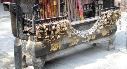 Apparently you can buy padlocks and attach them here as a type of permanent honorific as opposed to the transitory incense.