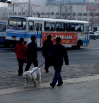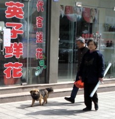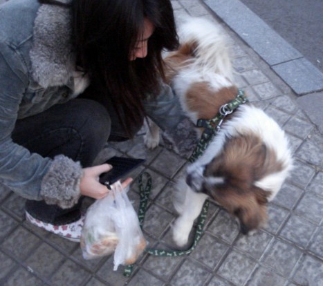 This poor puppy was all entangled in its leash.