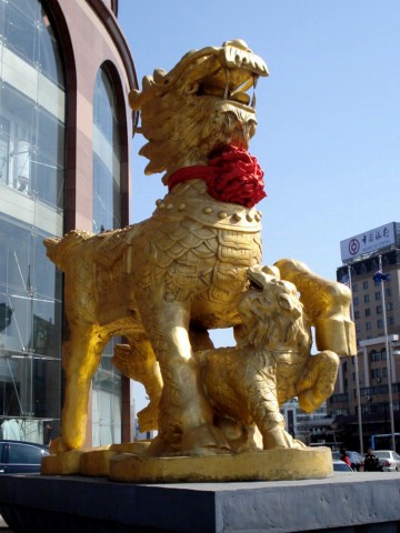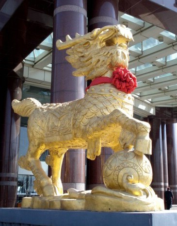 | The Ki'lin is a mythical being of Chinese mythology comparable to the western unicorn. They personify all that is good, pure, and peaceful. Ki'lin live in paradise and only visit the world at the birth of a wise philosopher. The male holds a ball under his paw and the female holds a playful cub. | ||||||||||||||||||||