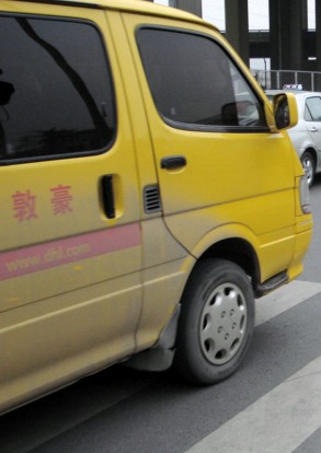 | Here's a DHL truck. I've seen a FedEx building on my travels, but I was asleep at the switch and didn't get a picture. I've also seen FedEx envelopes in our Office. Never UPS, though. |
