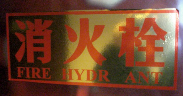 | This sticker is on the enclosure for the fire-fighting equipment between the entrance to my apartment and the elevator. Karen found it interesting, so I thought you might also. There is an amazing amount of English on signs around Qingdao. Although tortured translations always result in a mental smile, I still invariably appreciate the efforts because without them I would be totally lost. A bit of trivia: The Chinese version of 9-1-1 is 1-1-9. |