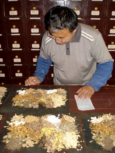 Quality control. The doctor is verifying the accuracy of the filling of his prescription.