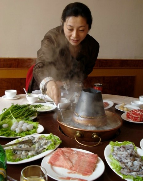 | That's pretty suspect French up there, but I'm many, many miles away from my French dictionary. Nothing suspect about the pleasure of this feast, though. I can best describe it as a Chinese version of Swiss fondue. Like so much of the cuisine here, this was a healthy alternative--heated water did the cooking rather than heated oil like we're used to. | ||||||||||||||||||||