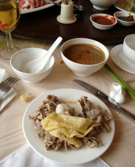 | And I want to point out the bowl just above the knife. It has peanut dip and a little hot sauce floating on top. "Hao chi" (delicious!), as we say around here. | ||||||||||||||||||