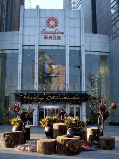 | The Chinese are no slouches when it comes to marketing. Yes, that does say "Merry Christmas" over the doorway to the department store next to my apartment. They even have a Santa that the children can be photographed with, but he looks pretty pitiful by our standards. I had the impression that they had taken a Santa outfit that was designed for export to a 250-pound American, and had given it to a |