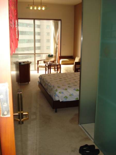 | pleasure (?) of paying one year's rent right up front--and that was at my own expense because of the special, mutually-beneficial arrangement with my employer that is making this whole China adventure possible--so I know I'll be here for the year. In case you have a feeling for metrics, the studio apartment is a total of 52 square meters. The kitchen and bathroom have opaque walls with sliding | |||||||||||||||||||||||||
