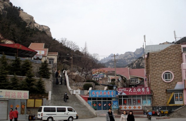 So up we go, but first let's take a quick look at the yellow bulletin board just above the right rear of that white minivan.