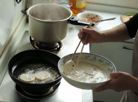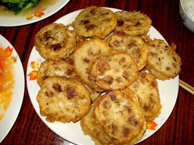| Let's watch BigSister make batter-dipped, chicken-stuffed, fried bamboo root: | ||||||||||||||||||||||