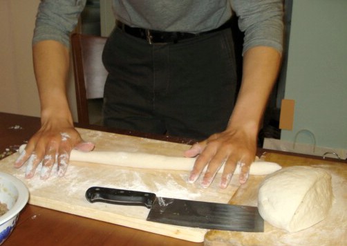 Flouring the sticky ends.