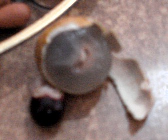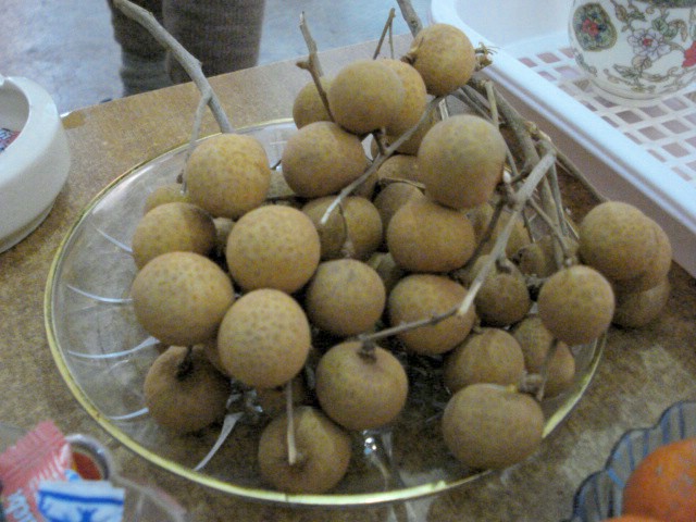 | I was introduced to this grape-like fruit on a twiggy branch. It has a thin skin, thin layer of fruit, and a large, shiny seed. The seed is the black bit up there out of focus. | ||||||||||||||||||