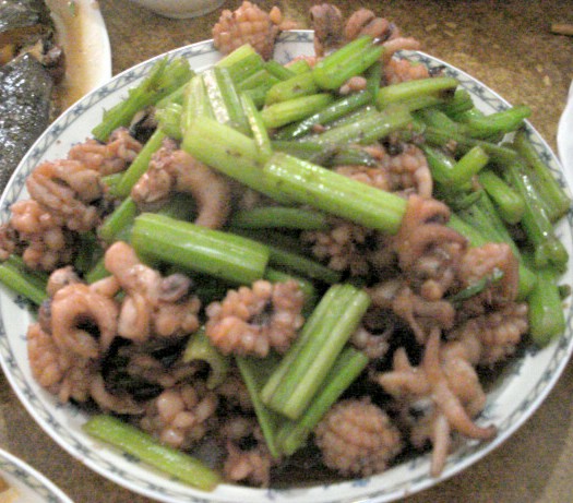 Octopus and chives; squid and celery.