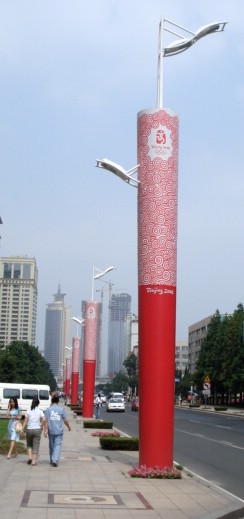 | And it's not just buildings that have been decorated. These seaside street lights have been turned into Olympic torches. | ||||||||||||||