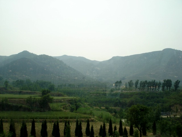 | We took the high-speed train from Qingdao to Jinan and then a bus to Qufu (pronounded: CHOO-foo). I'll skip over the train ride because I've already shared that with you back when Fish and I made the same trip to Jinan. I'm using this picture to represent the terraced landscape that we encountered on the bus ride from Jinan to Qufu. |