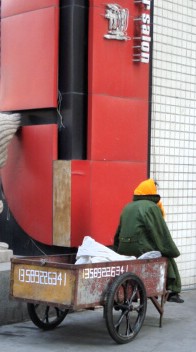 | I see people stationed with carts on the sidewalks throughout Qingdao whose livelihood is recycling. I'm not sure how their carts are filled everyday, but I've seen some going through trash in search of recyclable items. | ||||||||||||||||