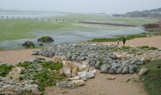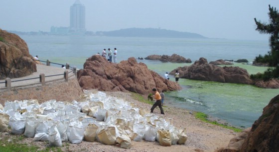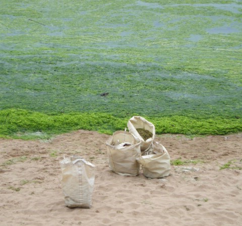 | Collected in bags and moved by hand. The only thing I can think of to compare this to is the communal response in the States when flood waters are rising and sandbagging efforts are underway. |