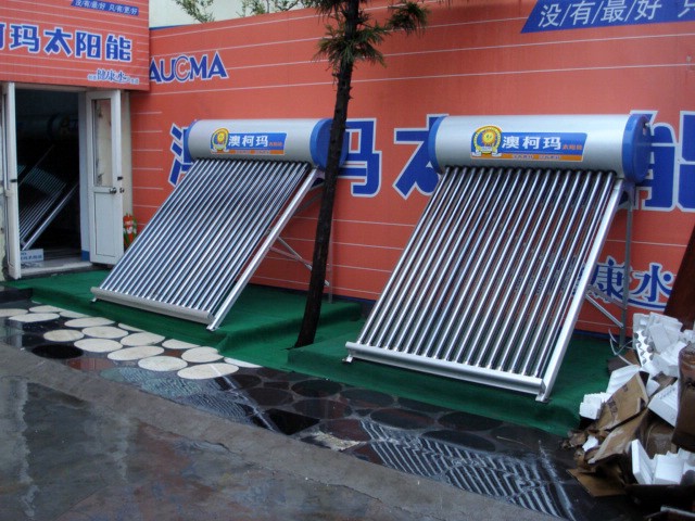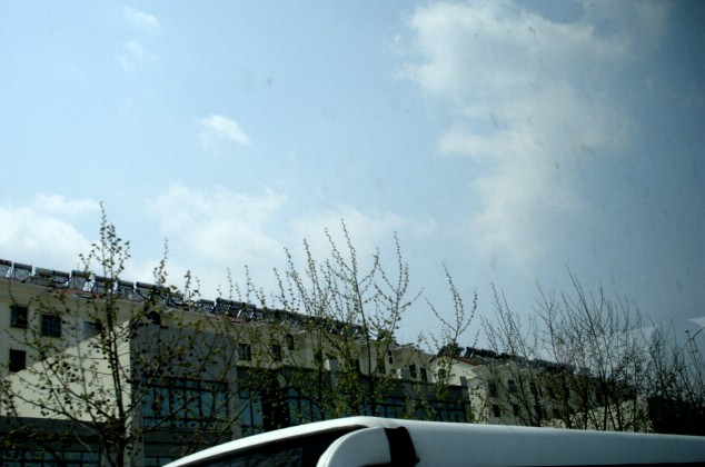 | As I flew back from the States into Qingdao this past sunny Wednesday morning, I noticed the sparkling roofs on so many of the new buildings and it reminded me that I've been meaning to talk about the solar water heaters for a long, long time. | |||||||||||||