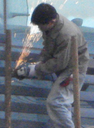 This fellow was grinding away some thirty feet over my head as I walked by. I raised my hand as a side shield to my glasses.