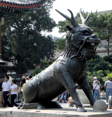 | Here's what has to be the most magnificent sculpture of a qilin (pronounced 'Chee-leen') that I have ever seen. This mythical, hybrid animal only appears on earth during times of harmony. | |||||||||||||