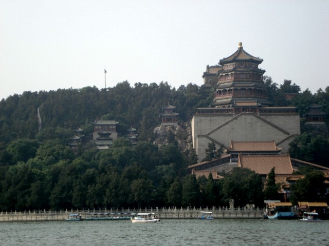 One final good-bye to man-made Longevity Hill as we head across man-made Kunming Lake in our mighty dragon boat.