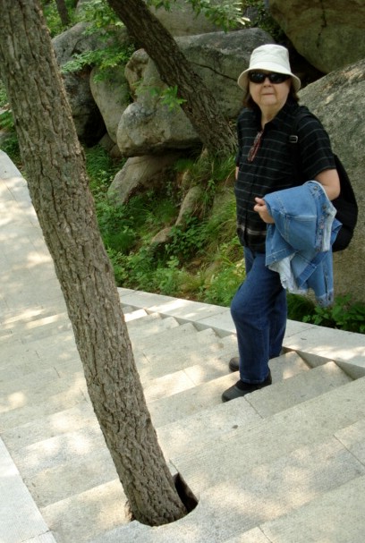 Karen liked how they'd left this tree alone when they built this new stairway.