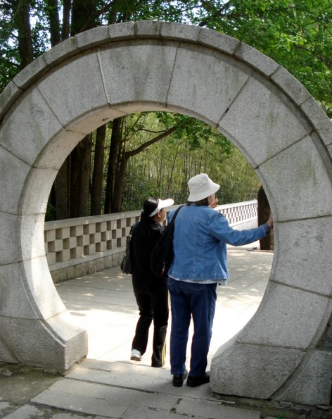 | The day before, Karen had mentioned that she'd been unsuccessfully looking for moon doors as we'd been taking buses around Qingdao. She finally found them here. | ||||||||||||||