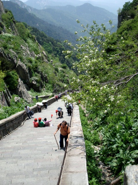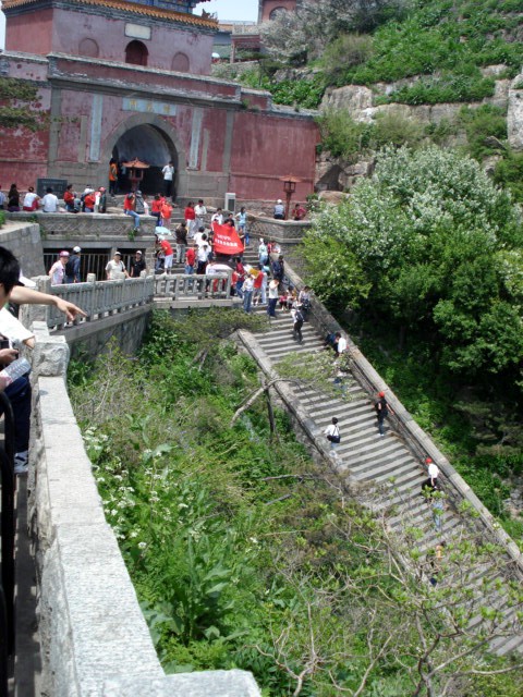 | Now, back to the folks who had climbed all the way up from the bottom or at least hadn't taken the gondola. Here's the top of the stairs. It was the scene of some exhausted jubilation. | ||||||||||||||||||