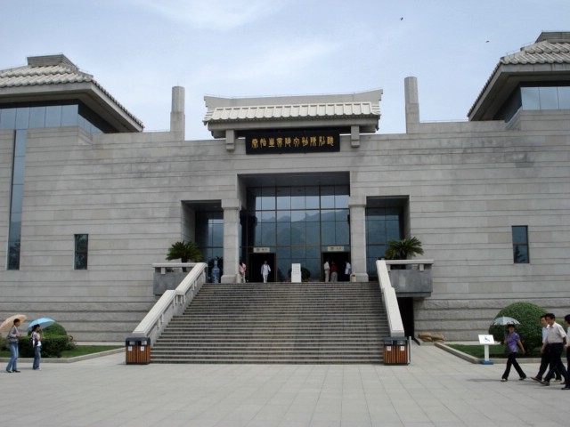 | There are buildings over three pits. This is the entrance to the smallest pit, Pit 3, containing 72 warriors and horses. It is believed to be the army headquarters due to the number of high-ranking officers unearthed here. | ||||||||||||||||||