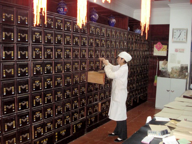 | This is for our daughter Laura and her co-workers at a Walgreen's Drug Store in Ohio. This Pharmacy Tech has drawers and drawers of goodies. Here you see here weighing out something that looked like bark. But more interesting than the bark was the scale. | |||||||||||||||||