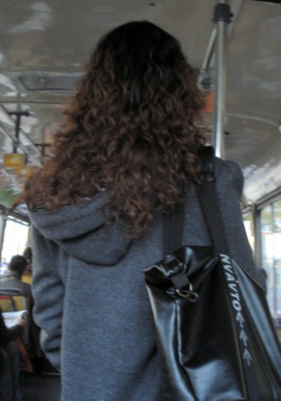 | A friend commented that being a "lao ren" (old person) was all well and good, but shouldn't I dye the little hair I have black to fit in? So, when this young lady was standing in front of me on the bus on the way to work yesterday morning, I had to snap this picture without a flash. I'm sure she paid a pretty penny to look different, but it hasn't cost me a thing. | ||||||||||||