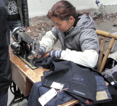 | I'd passed this lady and her "shop" at the mouth of the alley on my way to the side window. She seemed to be altering brand new items for her customers. | |||||||||||||