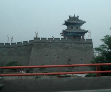 | Over the years, Karen and I have seen some impressive walled towns. I'm thinking of the Kremlin in Russia, where, in the Middle Ages, Moscow was a typical town-fortress. Or Rothenburg--Germany's best-preserved walled town. In both these instances, the walls are about one and a half miles long. We left Qingdao and continued our China adventure in Qufu, which was surrounded by a wall. And we also visited Beijing's Forbidden City, which has a wall over two miles long, forty feet high, thirty feet thick at the base and twenty feet wide on the top. And then we came to Xi'an, which has the most complete city wall that has survived in China. And Xi'an's city wall is also one of the largest ancient military defensive systems in the world. The Xi'an city wall is eight and a half miles long, forty feet high, fifty-five feet thick at the base and forty-five feet wide on the top. |