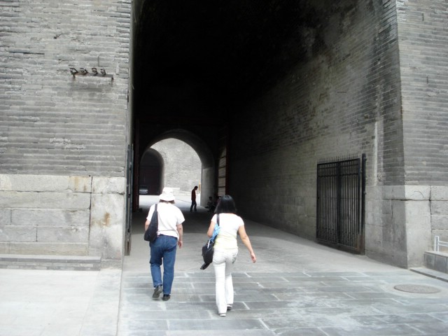 Here Karen and our guide are walking through the old main gate into the walled courtyard with the front gate.